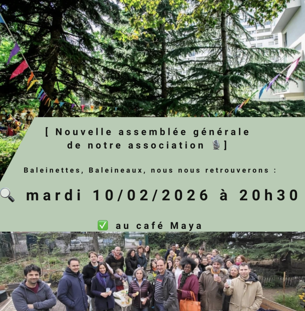 Prochaine Ag ouverte à toutes et à tous les membres le 10 février au soirPublié par Baleine Verte le 27 janvier 202627 janvier 2026 Catégories : Actualités ADLB Tags: convivialité Baleine Verte Jardin partagé créé en 2014 par l'association Autour de la Baleine (ADLB) 0 commentaire Laisser un commentaire Annuler la réponseVotre adresse e-mail ne sera pas publiée. Les champs obligatoires sont indiqués avec * Nom * E-mail * Site internet Qu’avez vous à l’esprit ? Enregistrer mon nom, mon e-mail et mon site dans le navigateur pour mon prochain commentaire. Δ Ce site utilise Akismet pour réduire les indésirables. En savoir plus sur la façon dont les données de vos commentaires sont traitées.