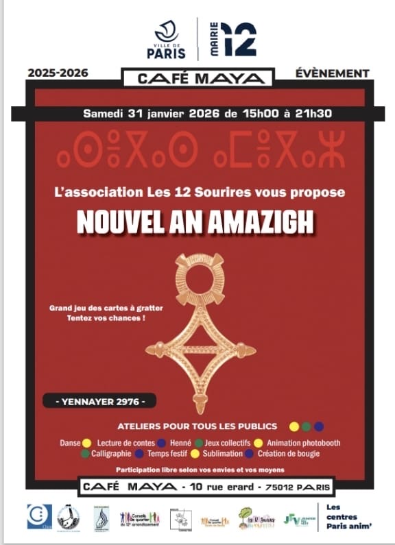 Notre association partenaire “les 12 sourires” a réuni beaucoup de convives samedi. Cette fête placée sous le signe du nouvel an berbère a été l’occasion d’atelier multiples. Henné, création de bougies, lecture de contes, calligraphie, sublimations, danse, jeux collectifs.Le café Maya a vibré, une fois de plus, de chants de fête.